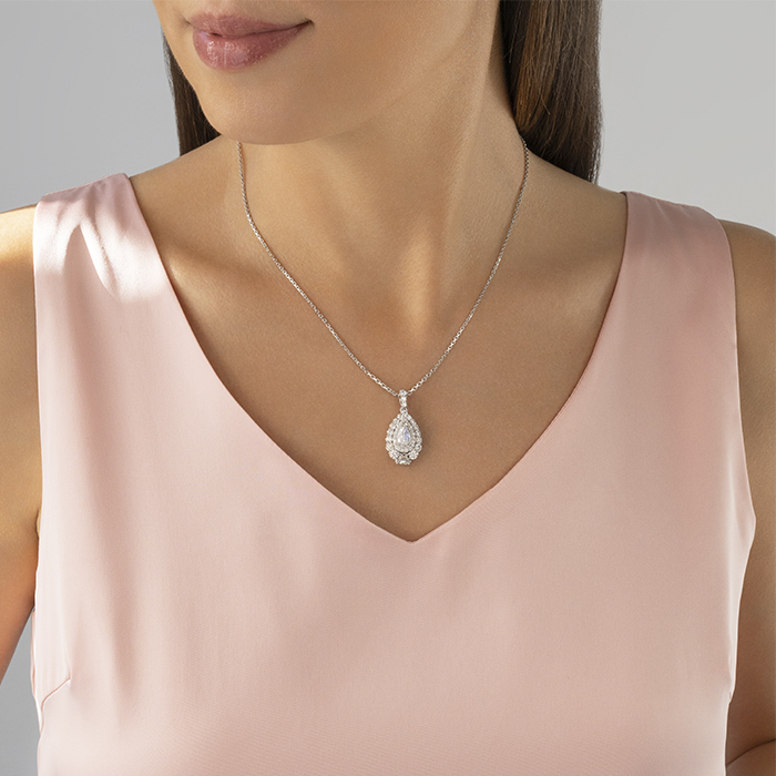L’Amour Crisscut® Pear Shape Diamond Halo Pendant